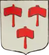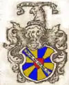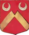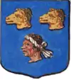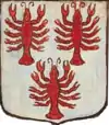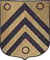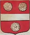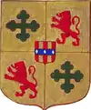 D'or à la croix treflée de sinople ; écartelé d'or au lion de gueules, sur le tout de gueules à deux pals d'or, chargés d'une fasce d'azur, fur chargée de trois losanges d'argent.