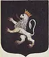 D'argent au lion de sable, armé, lampassé et couronné de gueules. |