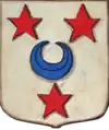D'azur à un vol d'argent, surmonté de deux étoiles d'or. |