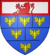 D'or, au chevron d'azur chargé de deux lions affrontés d'argent et accompagné de trois tourteaux d'azur.[20] |