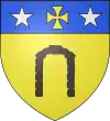 D'or, à la croix de gueules, accompagnée en chef de deux sautoirs alésés de même, et chargée, en pointe, d'un croissant d'argent.[7] |