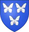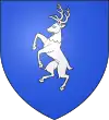 D'argent à une barre (alias bande) d'azur chargée de trois coquilles d'or, accompagnée de deux merlettes de sable, l'une en chef, l'autre en pointe.[26] Alias au croissant d'azur sur le 2e quartier.[24] |