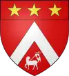 D'azur, à trois taus d'or, 2 et 1, et trois étoiles d'argent, 2 et 1.[1] |