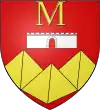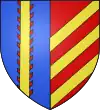 D'or, à deux pals de gueules et trois molettes d'azur, superposées au milieu de l'écu.[1] |