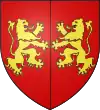 D'azur, au lion d'or armé et lampassé de gueules, au chef d'or chargé de trois molettes d'azur ; à la bordure de même.[1] |