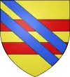 Fascé ondé d'argent et de gueules, à six pièces ; au chef d'azur chargé de trois fleurs de lys d'or.[1] |