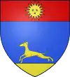 D'azur, au soleil d'or, naissant et rayonnant en chef à dextre ; au tournesol en pointe à senestre, tigé, feuillé, fleuri et terrassé d'or.[1] |