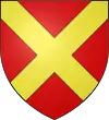 D'azur, au chef d'or.[1] Alias écartelé ; aux 2 et 3 d'or à un lion de sable armé et lampassé de gueules, au chef échiqueté d'argent et de gueules de trois traits. |