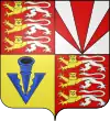 D'azur aux trois broyes d'or liées d'argent, au chef d'argent chargé d'un lion issant de gueules.[8] | |