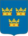 De 1222 à 1275, les rois de Suède portent les mêmes armoiries que celles des rois de Danemark[12]. Armoiries de 1275 à 1319 : D'azur, à trois barres ondées d'argent, au lion couronné d'or armé et lampassé de gueules, brochant sur le tout[13] (le roi Magnus III utilise les armes de son père - Birger Jarl - et ajoute une couronne sur le lion[12]). Armoiries de 1319 à 1363 : D'azur à trois couronnes d'or posées 2 et 1[13]. |