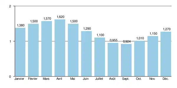 Aux étiages, le VCN3 peut chuter jusque 0,300 m3/s, en cas de période quinquennale sèche, soit 300 litres par seconde, ce qui est toujours bien loin d'être sévère.