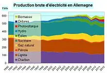 Production brute d'électricité en Allemagne par source, 1990-2012