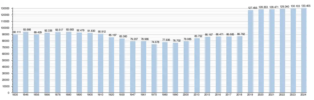 Chiffres au 1er janvier de chaque année[4]. La forte augmentation au s'explique par une redéfinition des limites de l'arrondissement.
