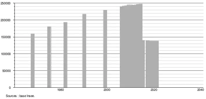 - Population municipale légale en vigueur au 1er janvier 2024, millésimée 2021, définie dans les limites territoriales en vigueur au 1er janvier 2023, date de référence statistique : 1er janvier 2021.