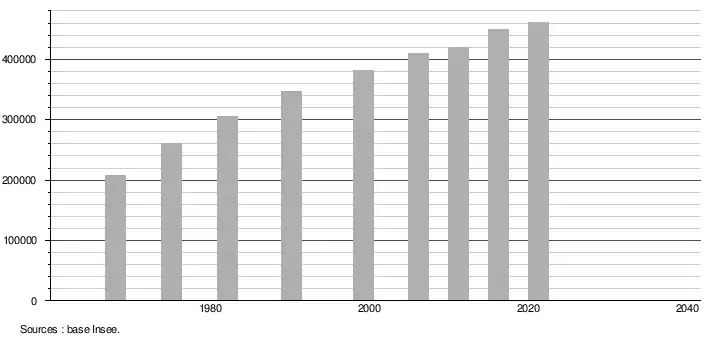 - Population municipale légale en vigueur au 1er janvier 2024, millésimée 2021, définie dans les limites territoriales en vigueur au 1er janvier 2023, date de référence statistique : 1er janvier 2021.