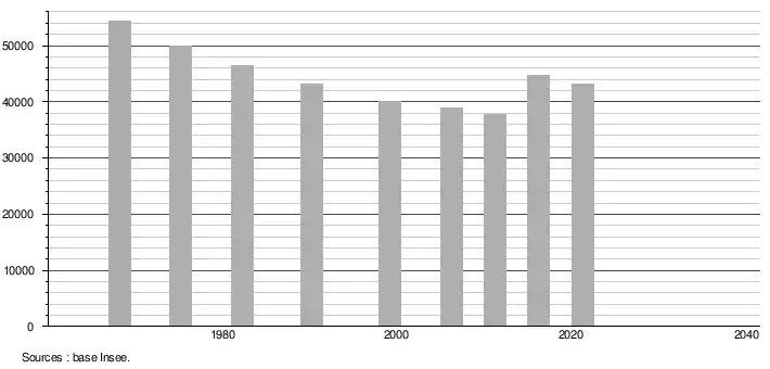 (Sources : Base Insee, population sans doubles comptes à partir de 1962[3] puis population municipale à partir de 2006[4].)