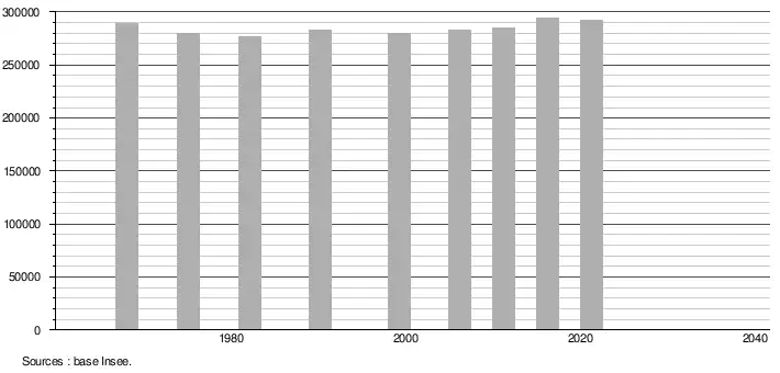 - Population municipale légale en vigueur au 1er janvier 2024, millésimée 2021, définie dans les limites territoriales en vigueur au 1er janvier 2023, date de référence statistique : 1er janvier 2021.
