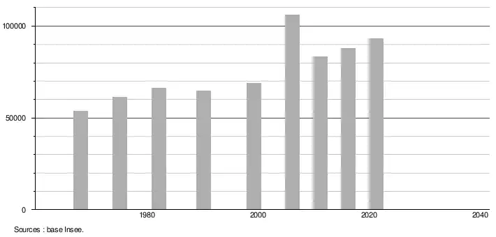- Population municipale légale en vigueur au 1er janvier 2024, millésimée 2021, définie dans les limites territoriales en vigueur au 1er janvier 2023, date de référence statistique : 1er janvier 2021.