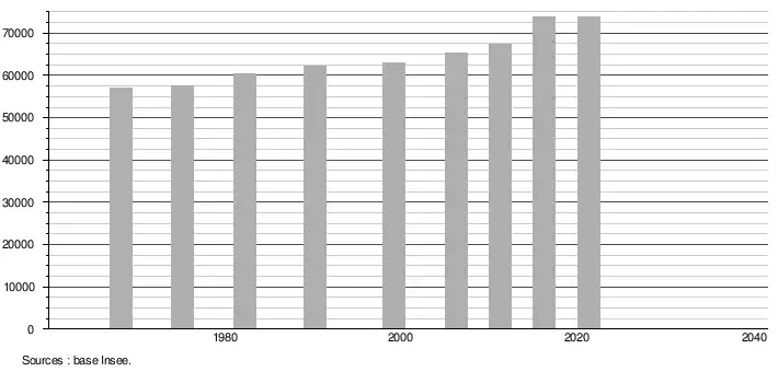 - Population municipale légale en vigueur au 1er janvier 2024, millésimée 2021, définie dans les limites territoriales en vigueur au 1er janvier 2023, date de référence statistique : 1er janvier 2021.