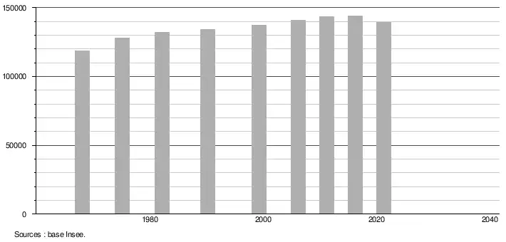 (Sources : Base Insee, population sans doubles comptes à partir de 1962[2] puis population municipale à partir de 2006[3].)