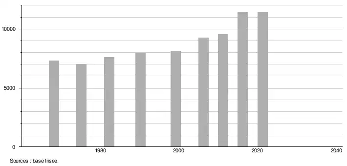 (Sources : Base Insee, population sans doubles comptes à partir de 1962[4] puis population municipale à partir de 2006[5].)
