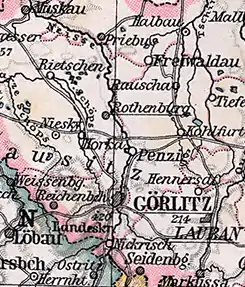 Après le Congrès de Vienne en 1815, une grande partie de l'ancienne Haute-Lusace saxonne devient une partie du district de Liegnitz de la province prussienne de Silésie. Le nouveau arrondissement de Görlitz est formé à partir de certaines parties de celle-ci en mai 1816[2]. Le bureau de l'arrondissement est à Görlitz.