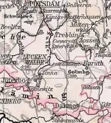 - l'ancien arrondissement de Luckenwaldesch (de), qui appartenait au duché de Magdebourg en vertu du droit constitutionnel et féodal et qui n'est rattaché à la circonscription de la chambre de guerre et de domaine (de) de la Marche-Électorale qu'au cours de la deuxième moitié du XVIIIe siècle