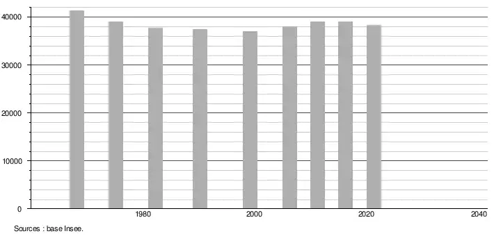 - Population municipale légale en vigueur au 1er janvier 2024, millésimée 2021, définie dans les limites territoriales en vigueur au 1er janvier 2023, date de référence statistique : 1er janvier 2021.