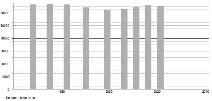- Population municipale légale en vigueur au 1er janvier 2024, millésimée 2021, définie dans les limites territoriales en vigueur au 1er janvier 2023, date de référence statistique : 1er janvier 2021.