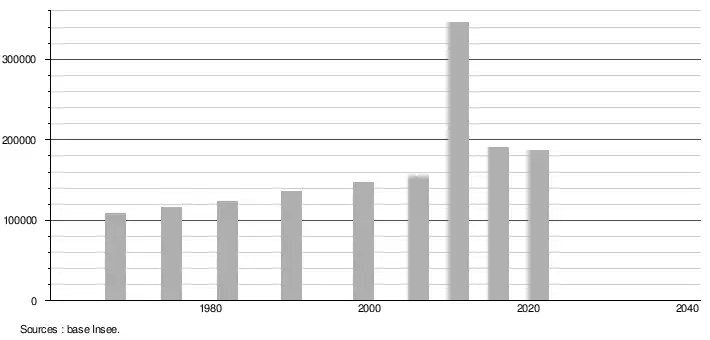 (Sources : Base Insee, population sans doubles comptes à partir de 1962[2] puis population municipale à partir de 2006[3].)