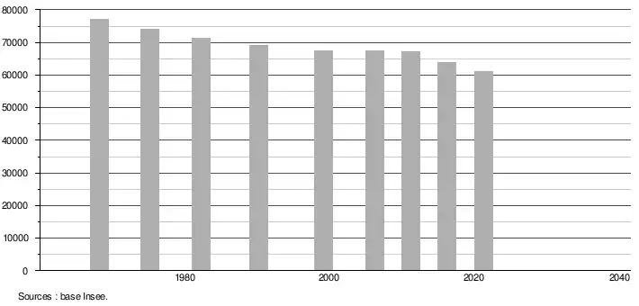 1. Population municipale légale en vigueur au 1er janvier 2024, millésimée 2021, définie dans les limites territoriales en vigueur au 1er janvier 2023, date de référence statistique : 1er janvier 2021.