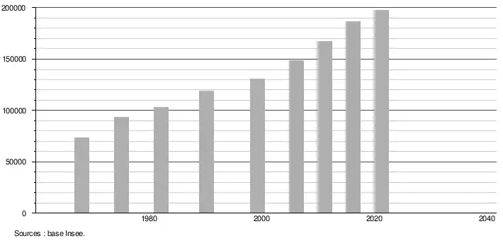 - Population municipale légale en vigueur au 1er janvier 2024, millésimée 2021, définie dans les limites territoriales en vigueur au 1er janvier 2023, date de référence statistique : 1er janvier 2021.