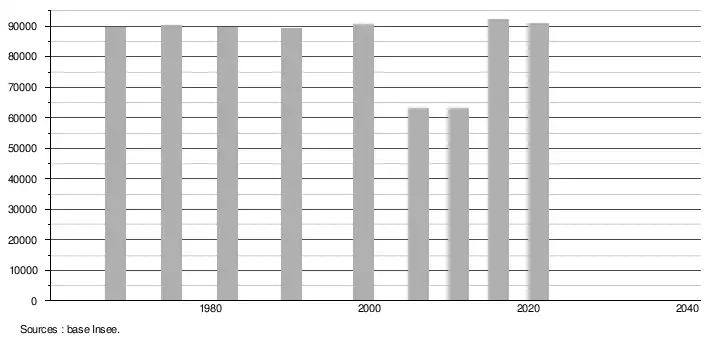 (Sources : Base Insee, population sans doubles comptes à partir de 1962[5] puis population municipale à partir de 2006[6].)