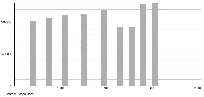 (Sources : Base Insee, population sans doubles comptes à partir de 1962[4] puis population municipale à partir de 2006[5].)