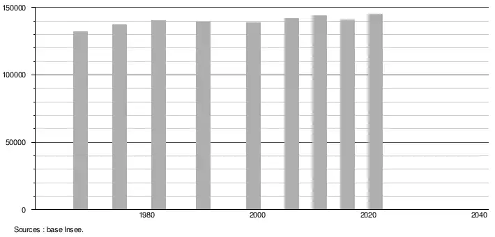 - Population municipale légale en vigueur au 1er janvier 2024, millésimée 2021, définie dans les limites territoriales en vigueur au 1er janvier 2023, date de référence statistique : 1er janvier 2021.
