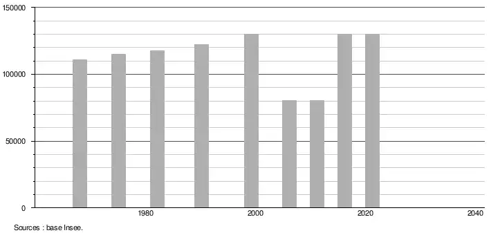 (Sources : Base Insee, population sans doubles comptes à partir de 1962[2] puis population municipale à partir de 2006[3].)
