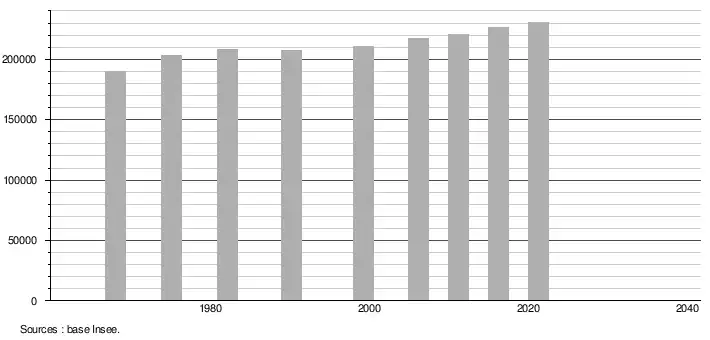 - Population municipale légale en vigueur au 1er janvier 2024, millésimée 2021, définie dans les limites territoriales en vigueur au 1er janvier 2023, date de référence statistique : 1er janvier 2021.