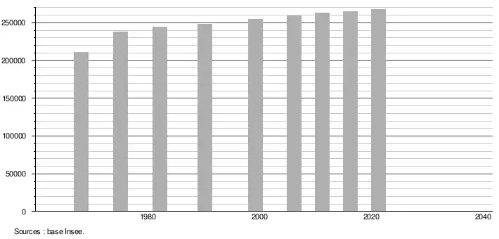 - Population municipale légale en vigueur au 1er janvier 2024, millésimée 2021, définie dans les limites territoriales en vigueur au 1er janvier 2023, date de référence statistique : 1er janvier 2021.
