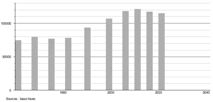 - Population municipale légale en vigueur au 1er janvier 2024, millésimée 2021, définie dans les limites territoriales en vigueur au 1er janvier 2023, date de référence statistique : 1er janvier 2021.