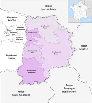 | Arrondissement de Provins | 773 | 2 344,60 | 186 339 (2021) | 79 | |