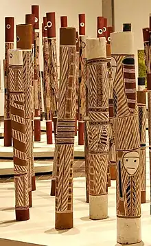 Son histoire débute lorsque la première vague de migrants, venus d'Asie du Sud-Est, s'installe en Australie et en Nouvelle-Guinée, il y a probablement environ 50 000 ans. Les plus anciennes œuvres d'art qu'on ait retrouvées d'eux sont des figures de pierre, des mortiers et des pilons ornés de motifs zoomorphes mêlés à des figures anthropomorphes[40].