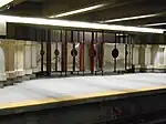 | De Varennes, Guy et Almas, Mathieu | Reliefs | 1984 | Béton cannelé | Incisions de motifs angulaires dans les murs de la station. | ![]() | ||