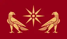 L'emblème des Artaxiades a été repris dans les armoiries de l'Arménie, aux côtés de ceux des trois autres dynasties arméniennes historiques : Arsacides, Bagratides et Roupénides[76]. On le retrouve dans les armoiries de la Première République d'Arménie (1918-1921), créées par Alexandre Tamanian et Hakob Kojoyan[77], ainsi que dans celles de l'Arménie moderne[76]. Il figure dans les deux cas au troisième quartier (en bas à gauche) et se blasonne ainsi (pour les secondes) : d'azur à deux têtes d'aigles affrontées d'argent.