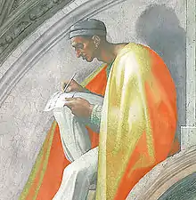 Les lunettes, qui contiennent la série des Ancêtres du Christ, ont été réalisées, comme le reste des fresques de la voûte, en deux phases, à partir du mur du fond, en face de l'autel. Les derniers épisodes, d'un point de vue chronologique, des histoires ont donc été les premiers à être peints. À l'été 1511, la première moitié de la chapelle devait être achevée, nécessitant le démontage de l'échafaudage et sa reconstruction dans l'autre moitié. La deuxième phase, qui a débuté en octobre 1511, s'est terminée un an plus tard, juste à temps pour le dévoilement de l'œuvre la veille de la Toussaint 1512.