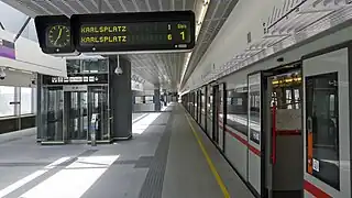 Mise en service en 2010, elle est desservie par les rames de la ligne U2 du métro de Vienne, qui depuis le ont pour terminus ouest provisoire Schottentor, avant l'ouverture du prolongement de la ligne prévu de 2028 à 2032. Elle est en correspondance avec plusieurs lignes de bus.