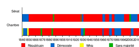 Depuis les élections de novembre 2016, le Parti républicain contrôle les deux chambres de l'Assemblée générale, ayant fait basculer le Sénat alors à majorité démocrate[3]. Lors de la session 2017-2019, les républicains comptent 59 représentants et 29 sénateurs[2]