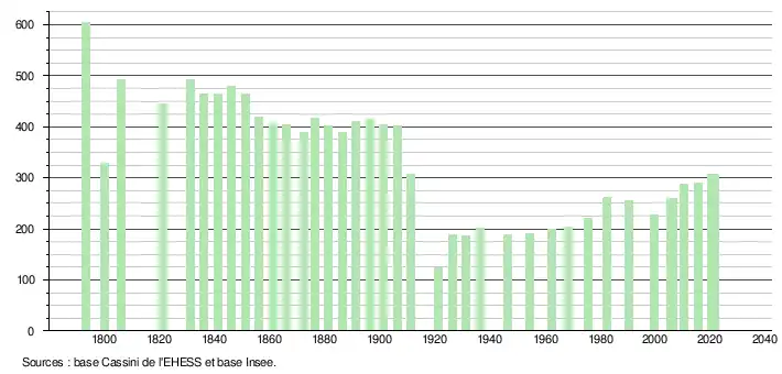308 hab. (2021 en augmentation de 6,21 % par rapport à 2015)