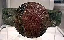 Plaque en bronze portant une représentation de la reine mère Naqi'a/Zakutu, derrière son fils Assarhaddon.