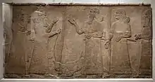 Assurnasirpal II et un dignitaire, bas-relief du palais nord-ouest de Kalkhu.