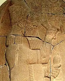 Assarhaddon, détail d'une stèle commémorant sa victoire sur l'Égypte, Vorderasiatisches Museum (Musée de Pergame) de Berlin.